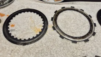 Nein aber die letzte Reibscheibe ist ja anders wegen der Judderfeder innen. Und die laeuft ja einseitig auf der Alunabe. Koennte also sein dass die Reibscheibe eine andere Materielmischung hat die fuer Alu mofofiziert ist und somit auch der Kontakt zur Stahlscheibe. Ergibt aber nicht unbedingt Sinn die Ueberlegung weil das gleiche auftritt bei der ersten Reibscheibe. Und dahinter sitzt eine Standardstahlscheibe.